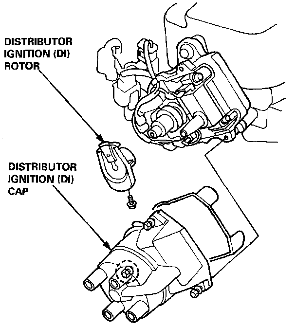 1. With the Ignition Switch "OFF", remove the Distributor Ignition (DI) Cap and the DI Rotor.