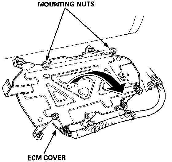3. Remove the ECM cover mounting nuts and turn the Transmission Control Module (TCM) over.