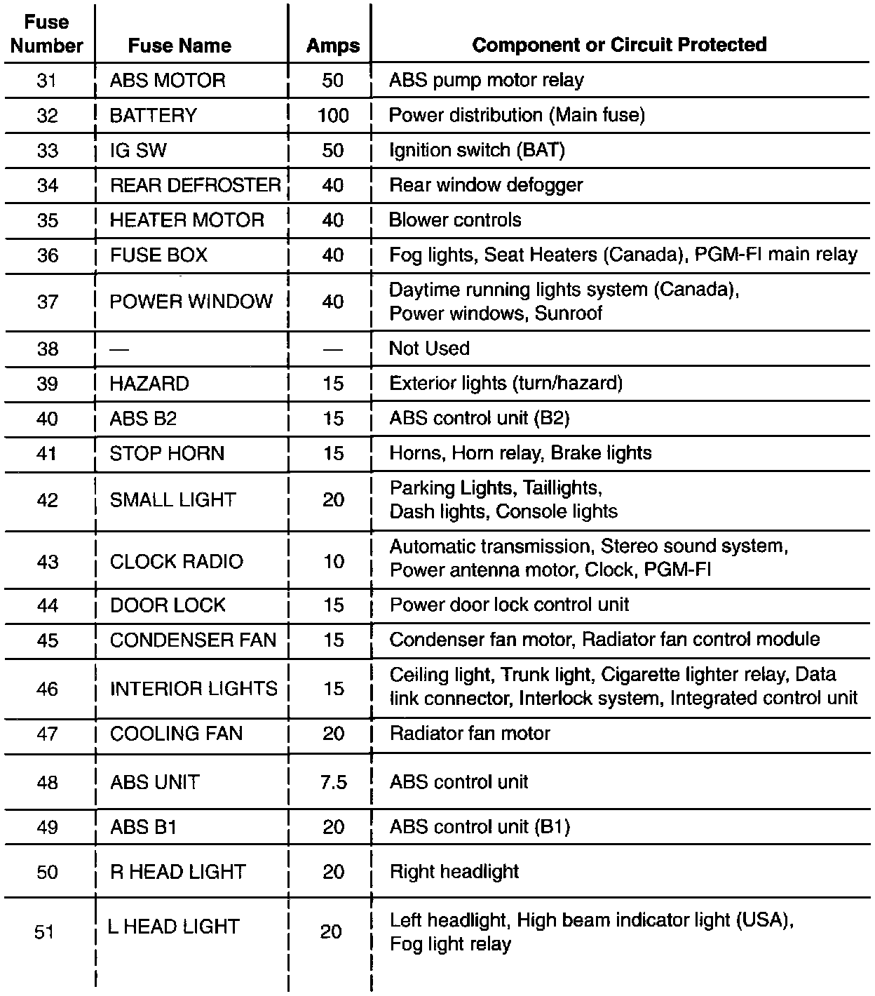 Fuse/Relay Information - Under-hood Fuse/Relay Box (Part 2 Of 2):