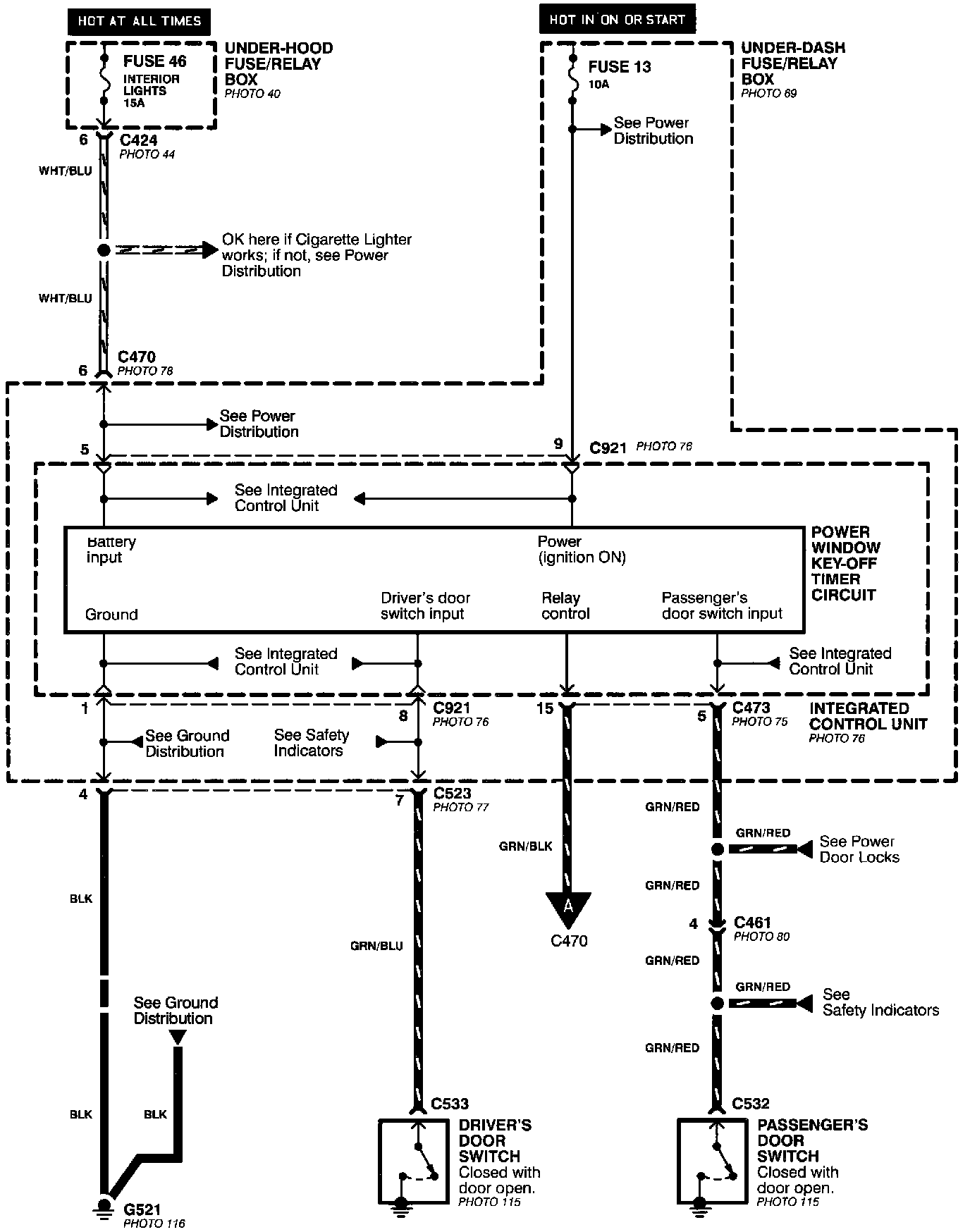 Power Windows - Key-OFF Timer Circuit: