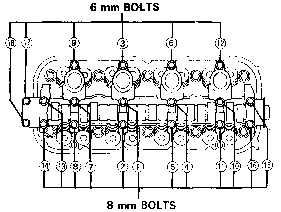 Torque cylinder head attaching bolts in three steps; first step to 29 ft. lbs., second step to 51 ft. lbs., third step to 72 ft. lbs.