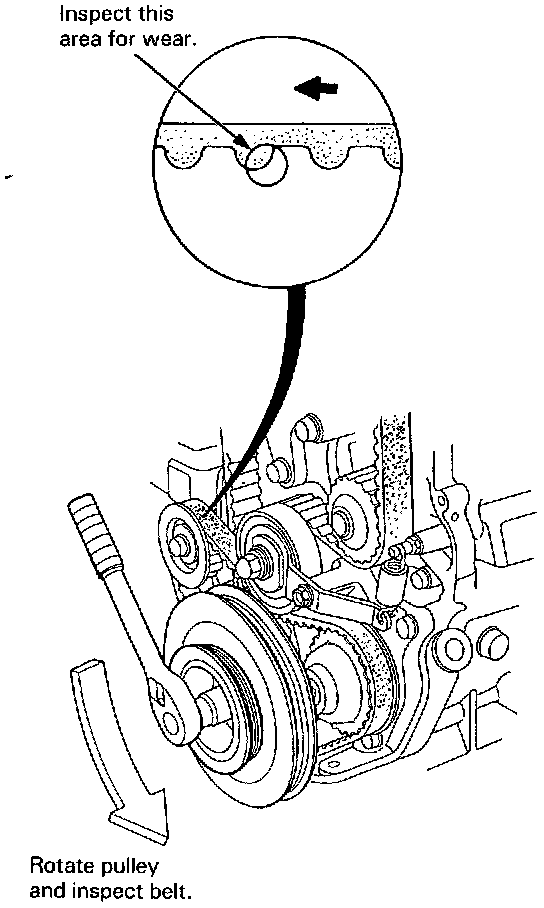 7. Inspect the timing belt for cracks and oil or coolant soaking.