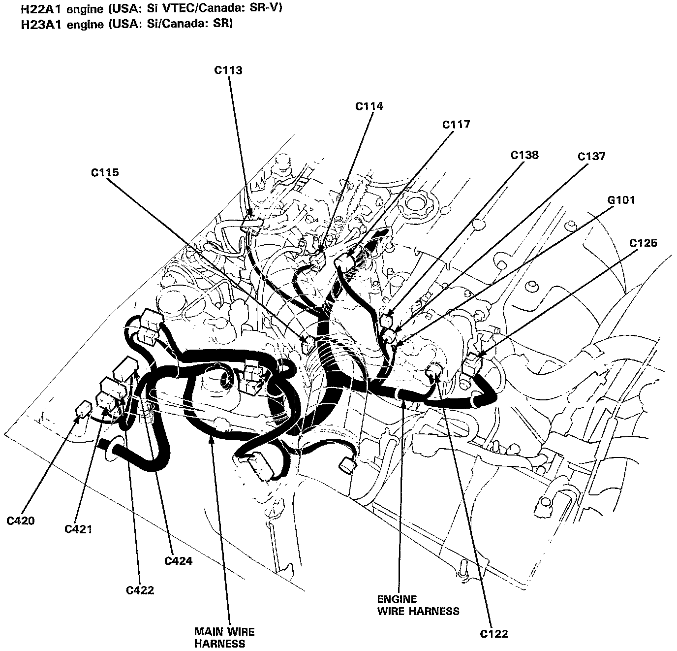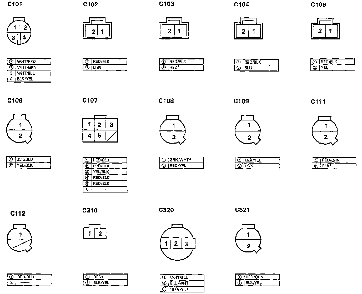 Different wires with the same color have been given a number suffix to distinguish them (for example, YEL/BLK1 and YEL/BLK2 are not the same).