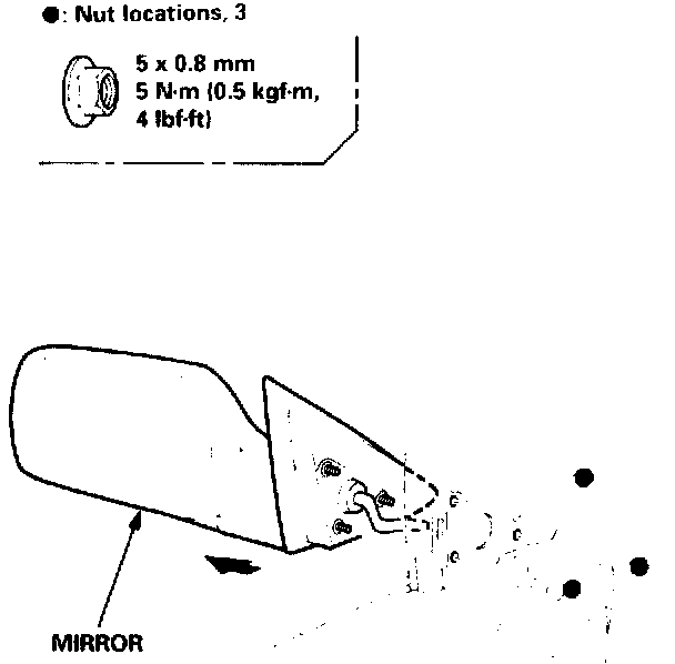 2. Disconnect the connector. Remove the nuts, then remove the mirror while holding it.