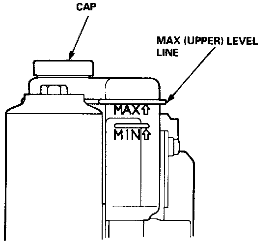 7. Check the brake fluid level in the reservoir. It should be below the MAX (upper) level line.