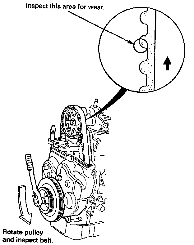 5. Inspect the timing belt for cracks and oil or coolant soaking.