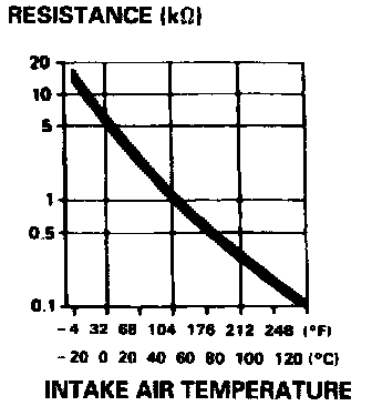 OPERATION The IAT Sensor is a temperature dependant resistor (thermistor). The resistance of the thermistor decreases as the intake air temperature increases as shown above.