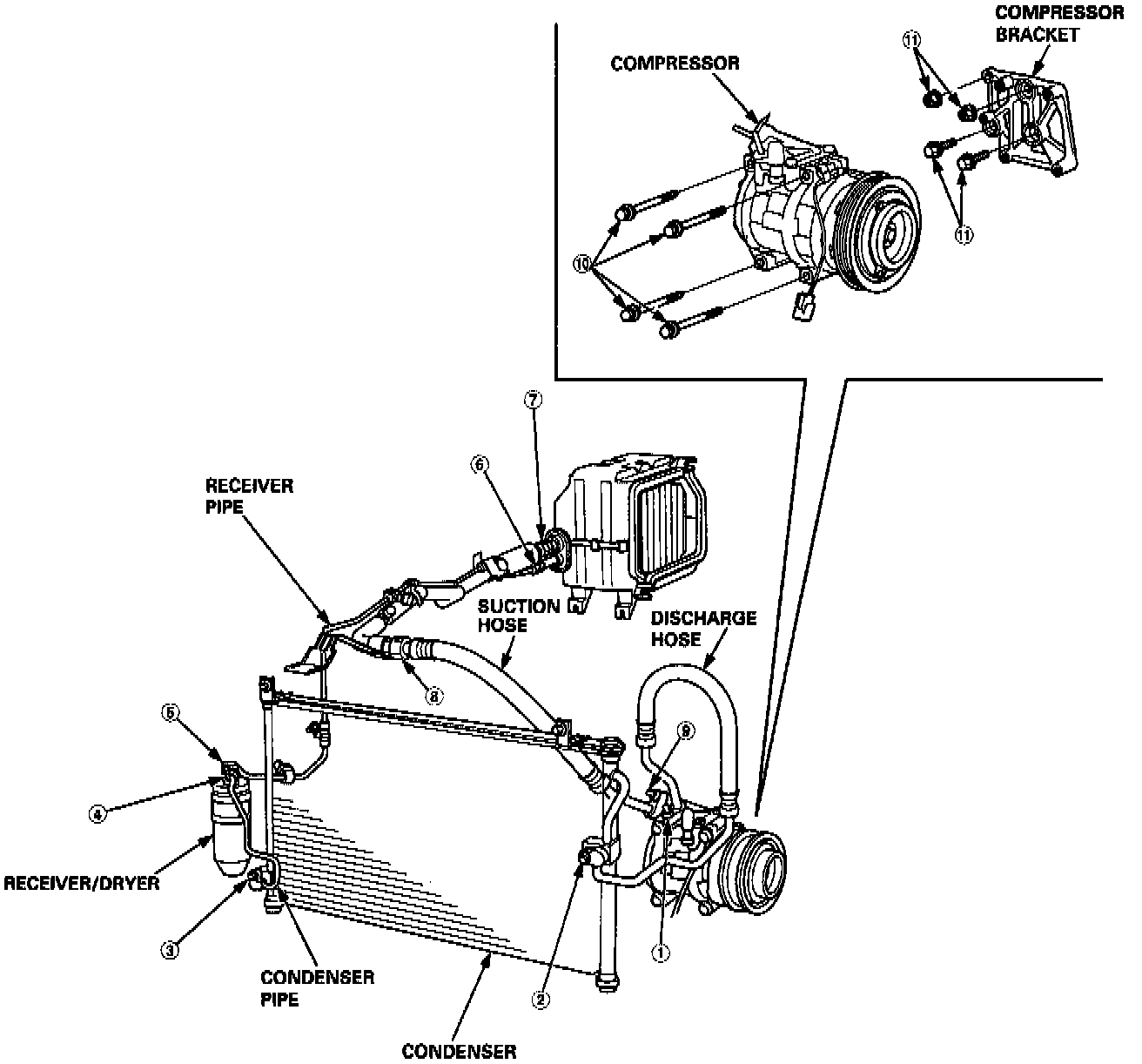 (6) Receiver Pipe To Evaporator: 13 Nm (9.4 lb ft)