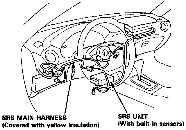 - All SRS wire harnesses are covered with yellow insulation. Before you disconnect any part of an SRS wire harness, disconnect the airbag connectors.