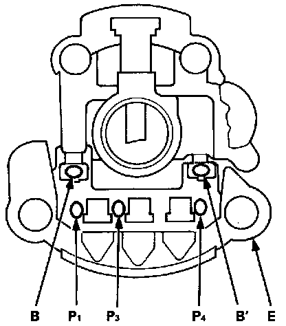 - the B and P terminals. the B' and P terminals.