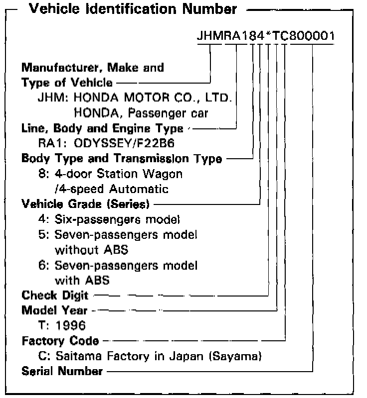 VEHICLE IDENTIFICATION NUMBER