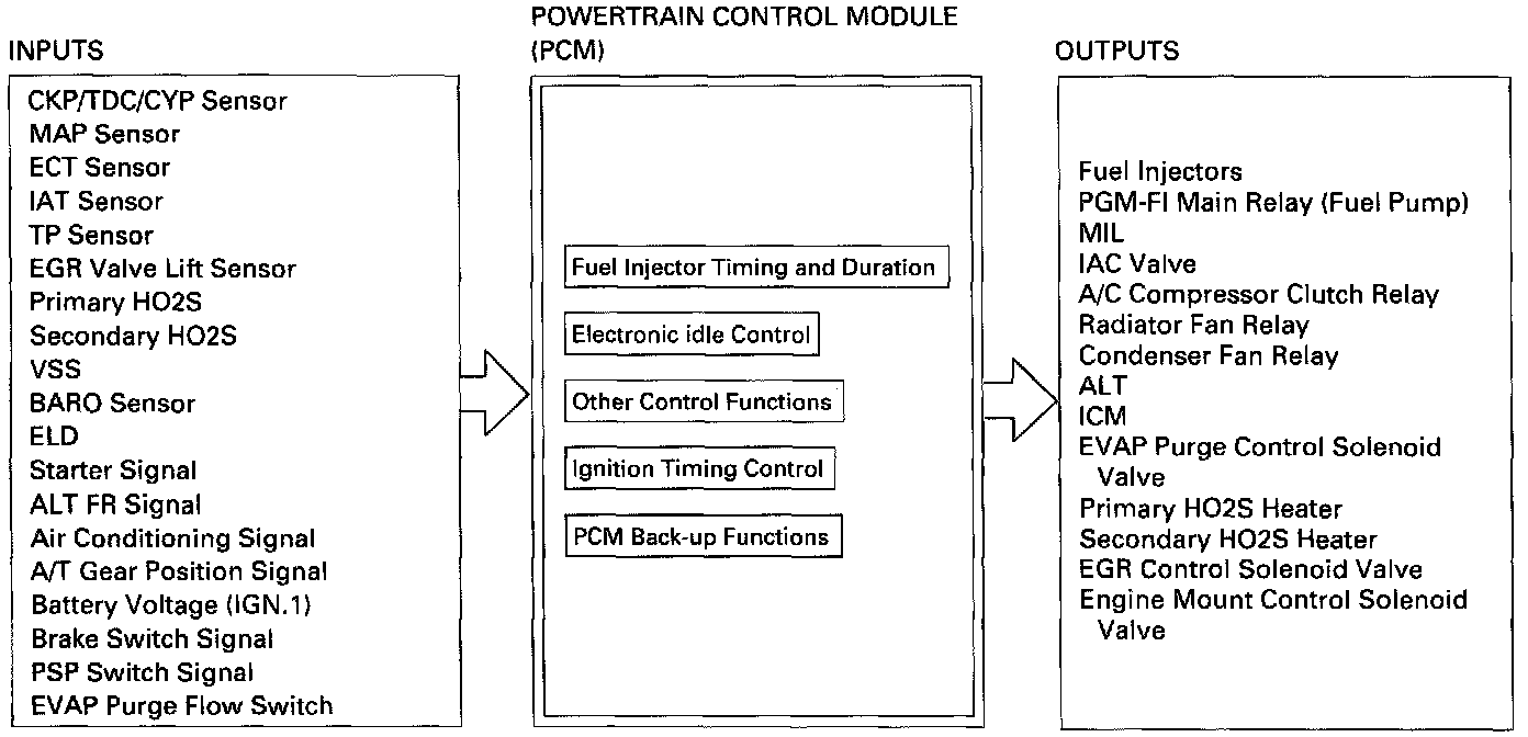 - When the engine is not running and the ignition is on, the PCM cuts ground to the PGM-FI main relay which cuts current to the fuel pump.