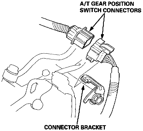 4. Remove the A/T gear position switch connector from the connector bracket, then disconnect the A/T gear position switch connector.