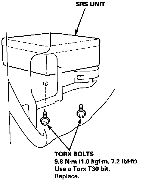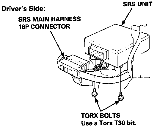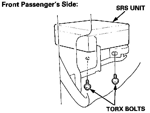 6. Remove the four Torx bolts from the SRS unit, then pull out the SRS unit from the driver's side.
