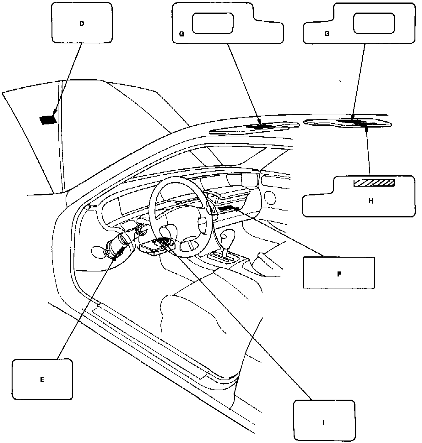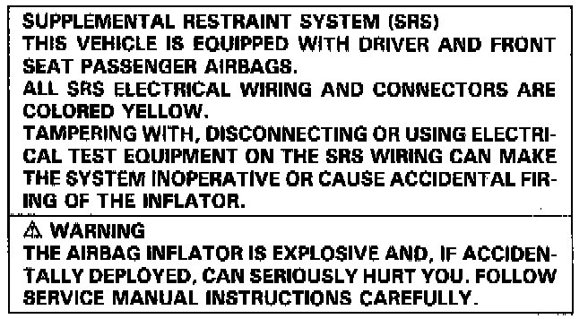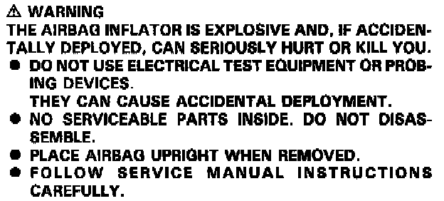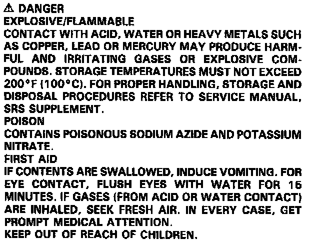 F: FRONT SEAT PASSENGER AIRBAG MODULE DANGER