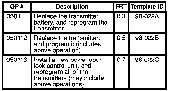 2. Program one of the transmitters to a 1997 or 1998 CR-V with a working keyless entry system. For programming instructions, refer to Service Bulletin 98-011 (filed under Body Electrical in the Service Bulletin Binder).