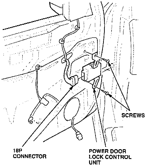 6. Remove the power door lock control unit (2 screws), and disconnect the 8P connector.