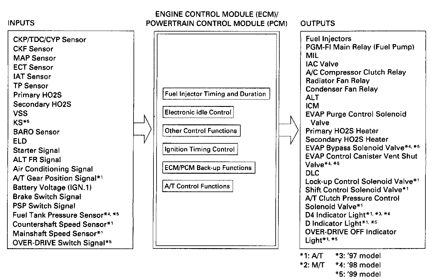 - When the engine is not running and the ignition is on, the ECM/PCM cuts ground to the PGM-FI main relay which cuts current to the fuel pump.