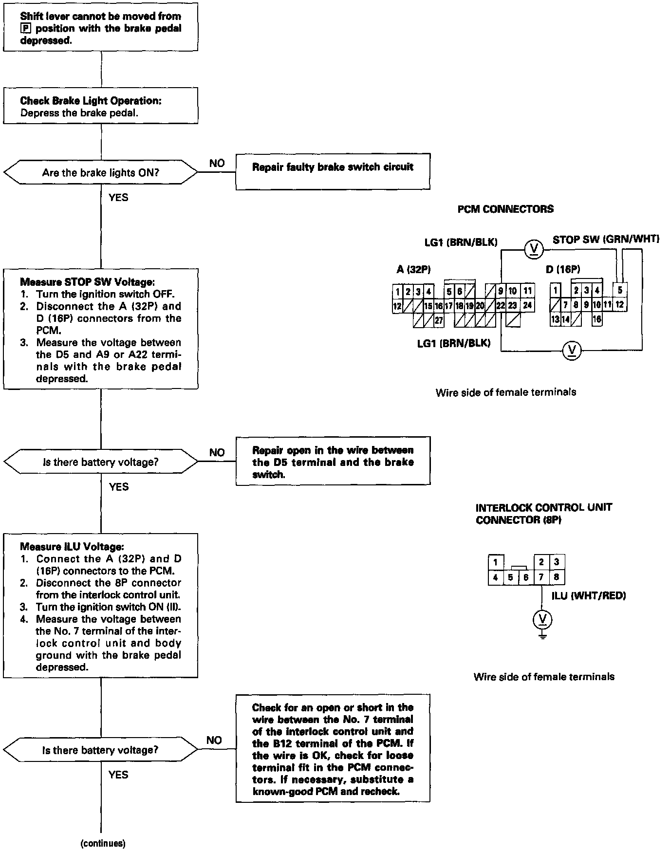 Interlock System - Shift Lock System Circuit Troubleshooting