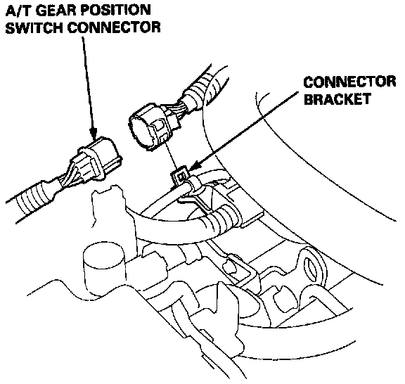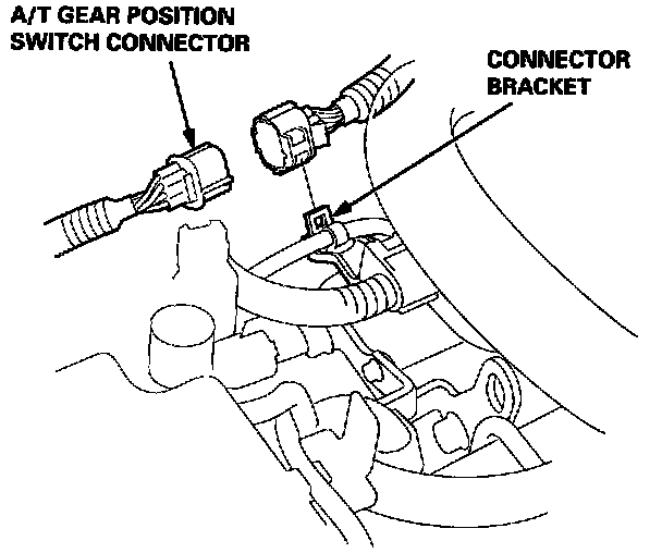 4. Remove the A/T gear position switch connector from the connector bracket, then disconnect the A/T gear position switch connector.