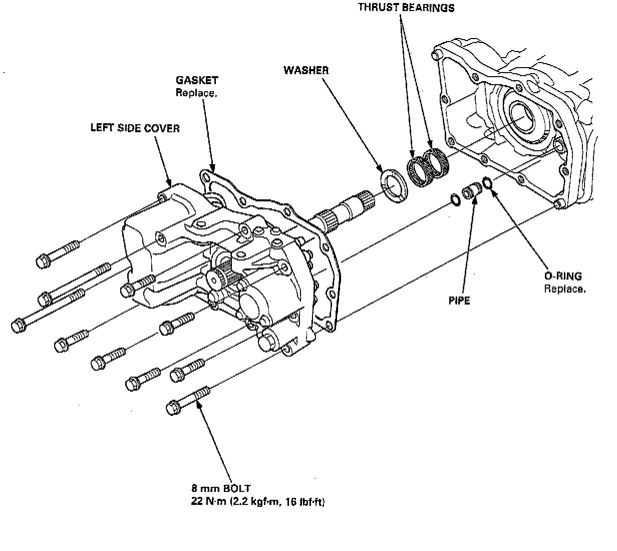 NOTE: Clean the disassembled parts with solvent, and dry them thoroughly with compressed air.1. Remove the left side cover and gasket.