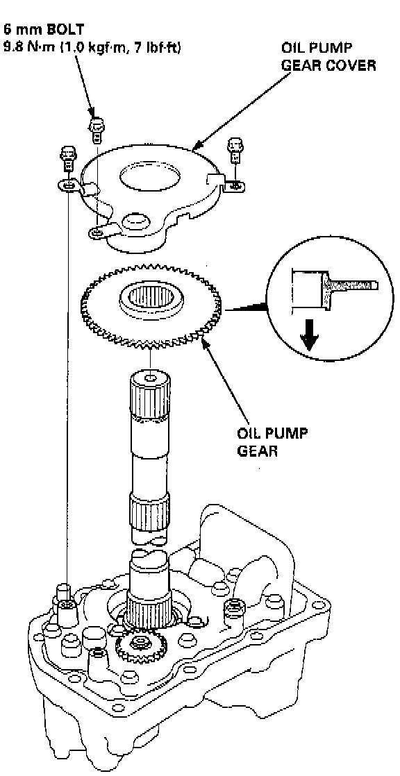 NOTE: When installing the oil pump gear, note the direction of the gear.