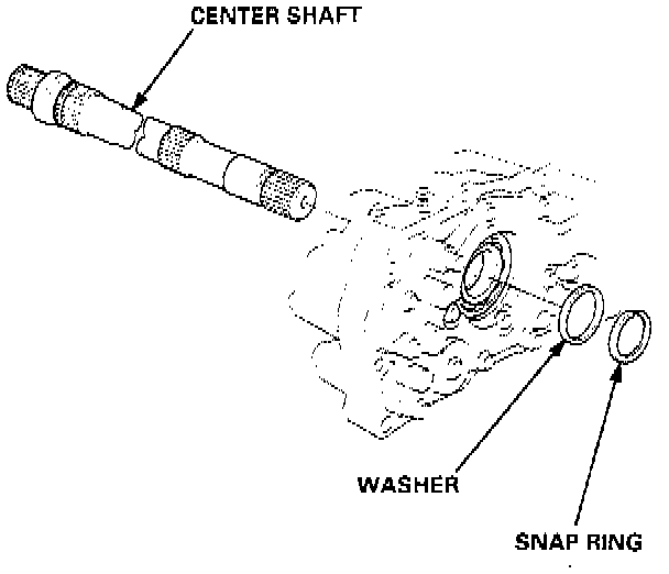 6. Remove the snap ring and washer, then remove the center shaft.
