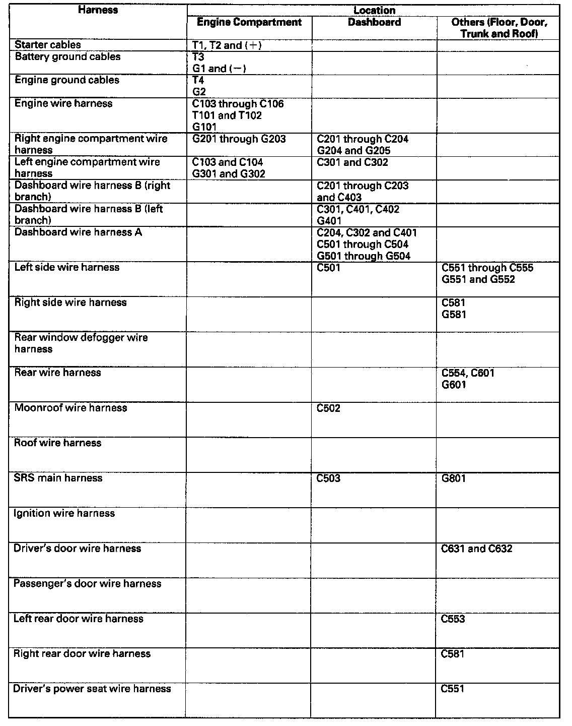Identification numbers have been assigned to in-line connectors. The number is preceded by the letter "C" for connectors, "G" for ground terminals or "T" for non-ground terminals.