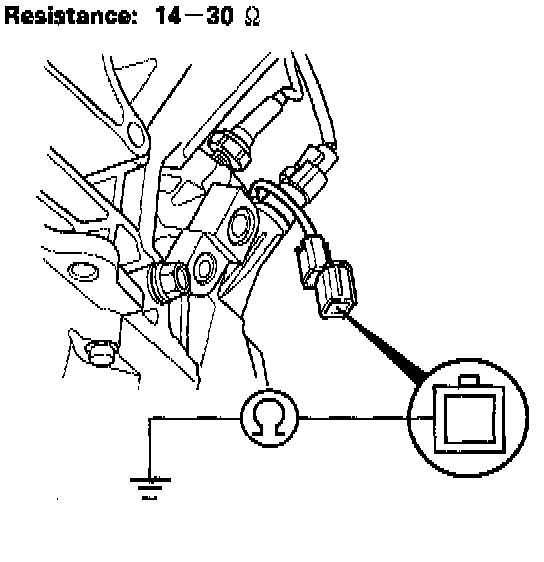 1. Disconnect the 1P connector from the VTEC solenoid valve.2. Measure resistance between the terminal and body ground.