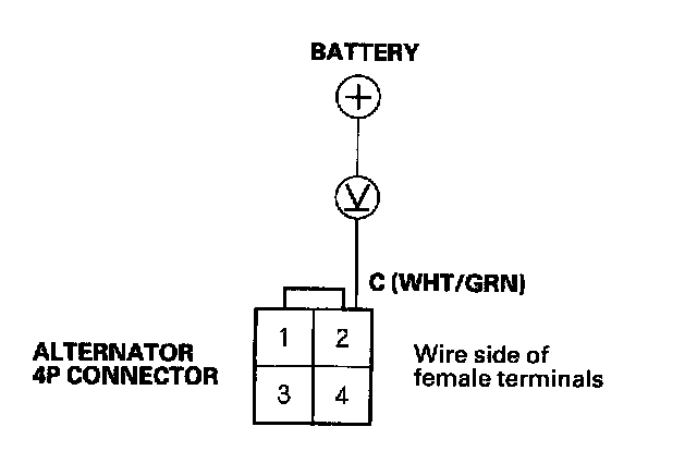 10. Measure the voltage at the No.1 terminal of the alternator 4P connector with the ignition switch ON (II).