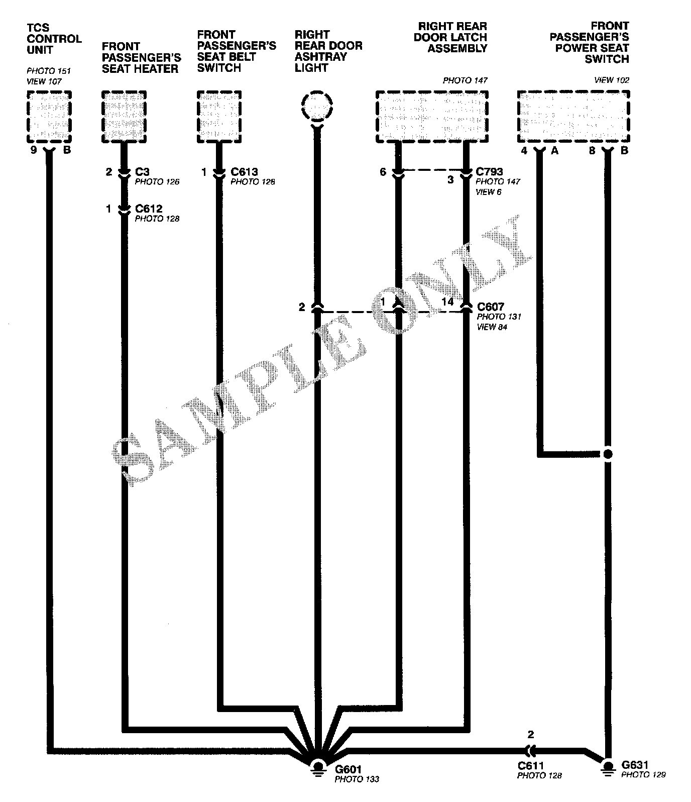 This sample Ground Distribution schematic shows all of the components that share two ground points.