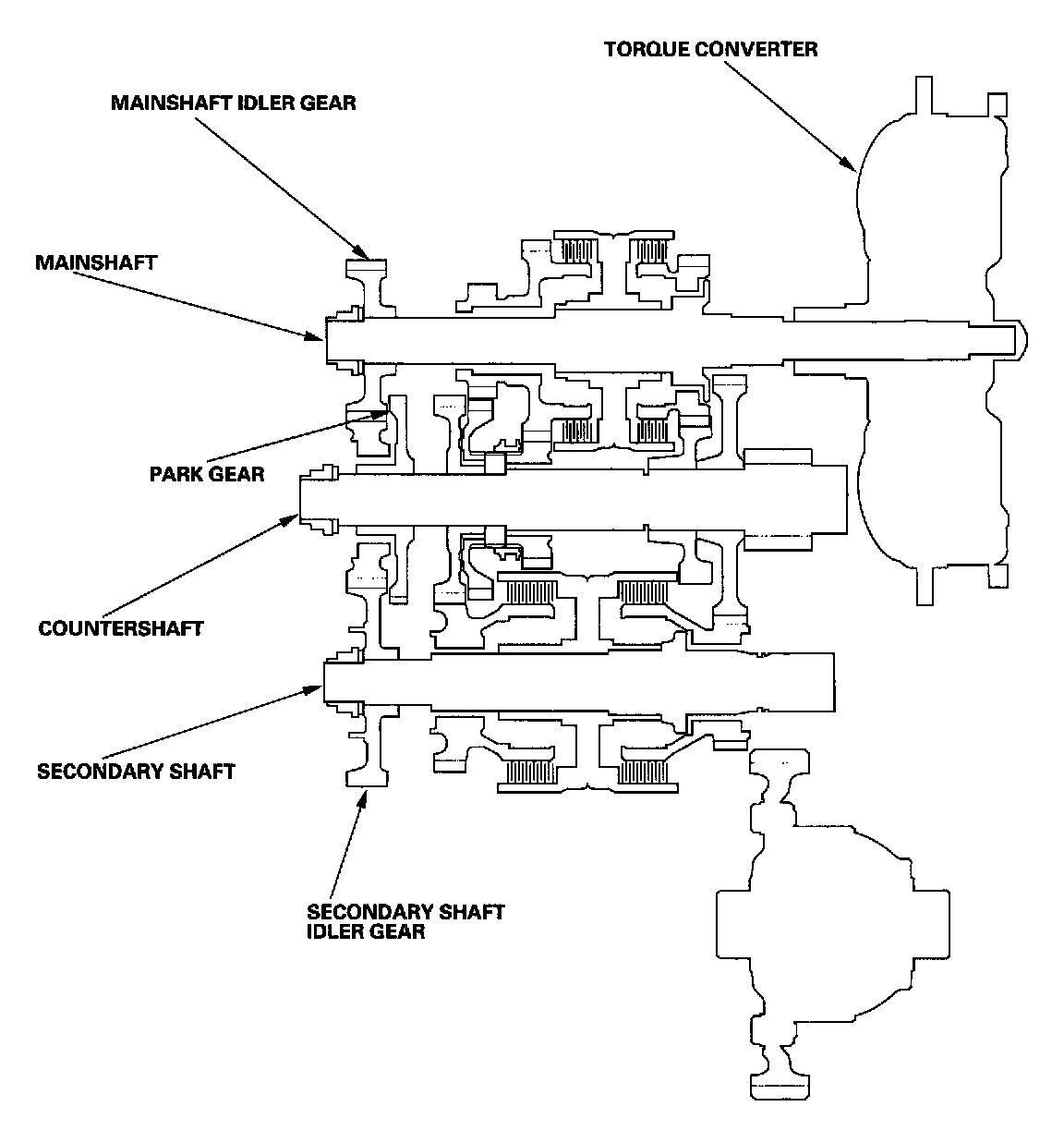 - The mainshaft idler gear drives the secondary shaft via the countershaft idler gear and secondary shaft idler gear.