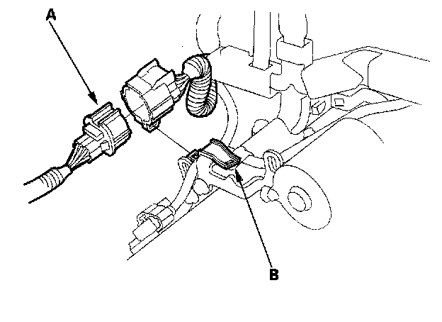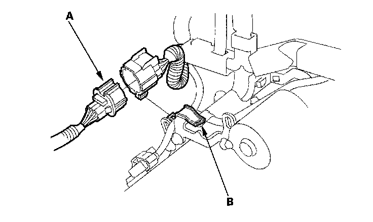 11. Connect the transmission range switch connector (A), then install it on the connector bracket (B).