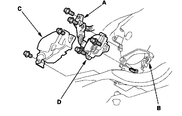 6. Remove the transmission range switch cover (C), then remove the transmission range switch (D) from the end cover.