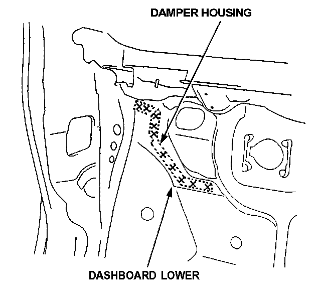 - Plug weld the holes in the lower dashboard and damper housing with a MIG welder.