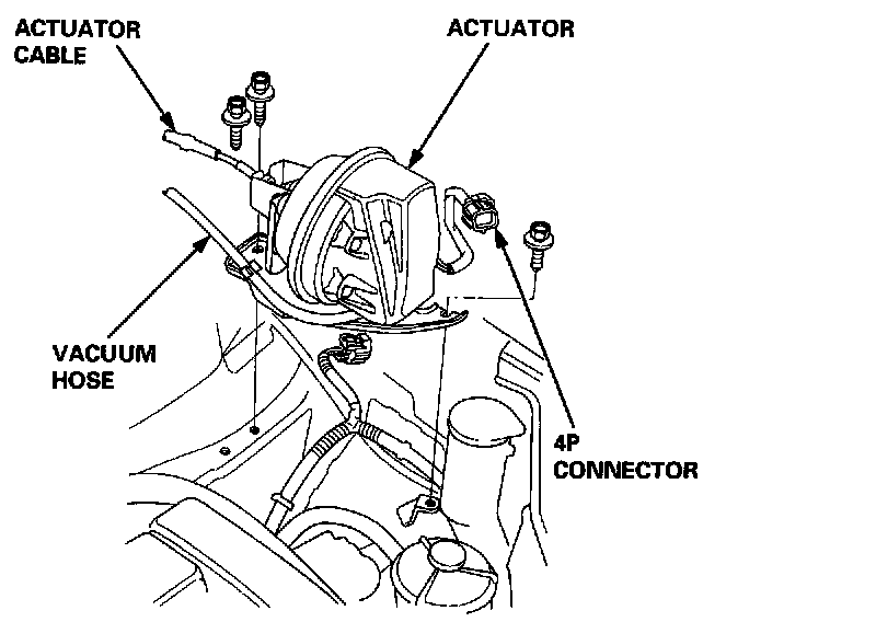 7. Install in the reverse order of removal, and adjust free play at the actuator rod after connecting the cable.