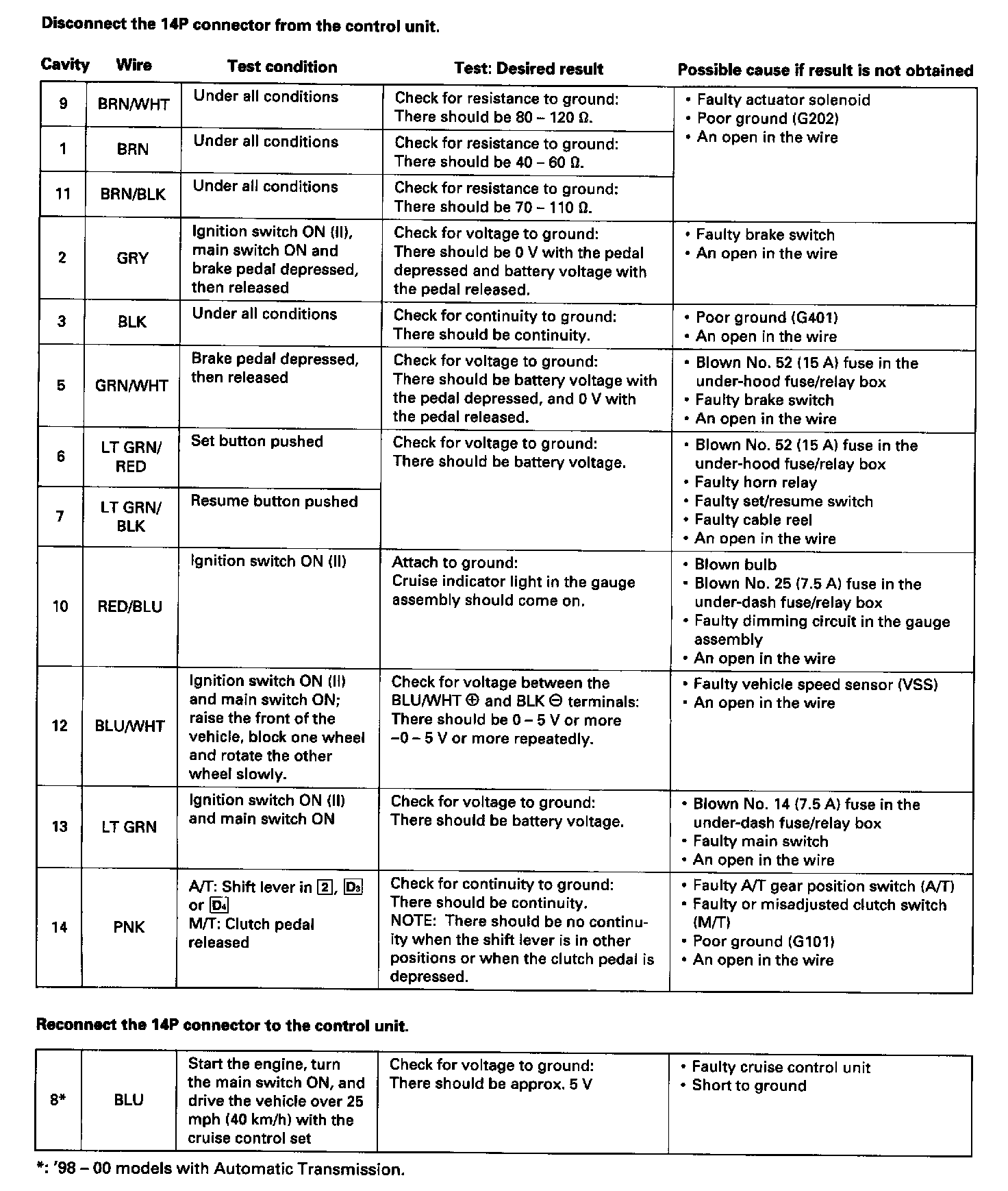 Cruise Control Unit Input Test