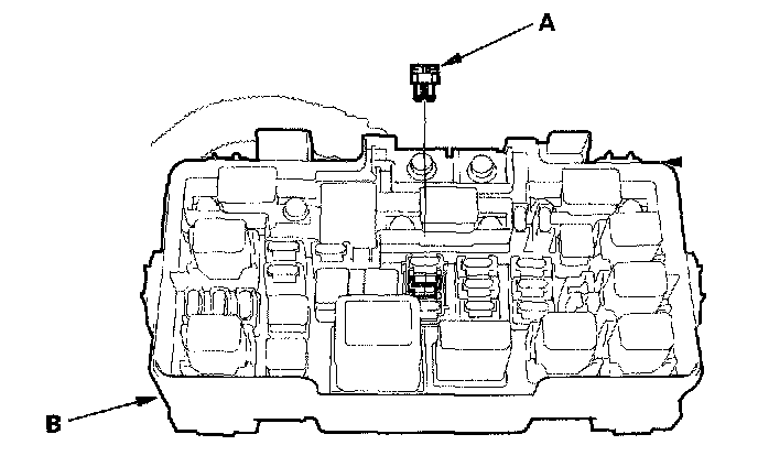 - Turn the ignition switch OFF, and remove the No.6 ECU (ECM/PCM) (15 A)fuse (A) from the underhood fuse/relay box (B) for 10 seconds.