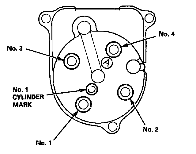 3. Remove the mounting bolts from the distributor, then remove the distributor from the cylinder head.