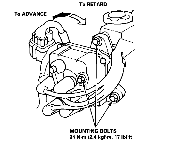 7. Tighten the distributor mounting bolts, and recheck the ignition timing.
