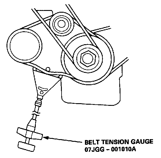Deflection Method1. Apply a force of 98 N (10 kg, 22 lb), and measure the deflection between the A/C compressor and the crankshaft pulley.