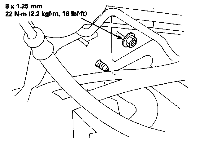 NOTE: When removing the mounting nut, take care not to damage or bend the fuel lines, the brake lines, etc.