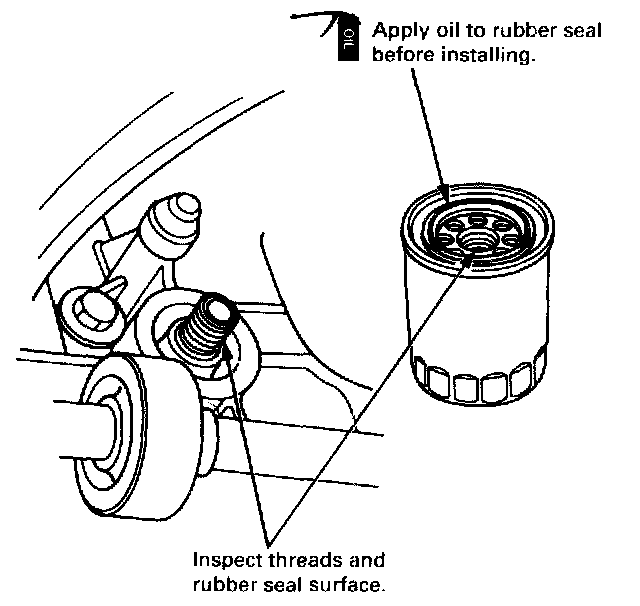 2. Inspect the threads and rubber seal on the new filter. Wipe off the seat on the engine block, then apply a light coat of oil to the new filter's rubber seal.