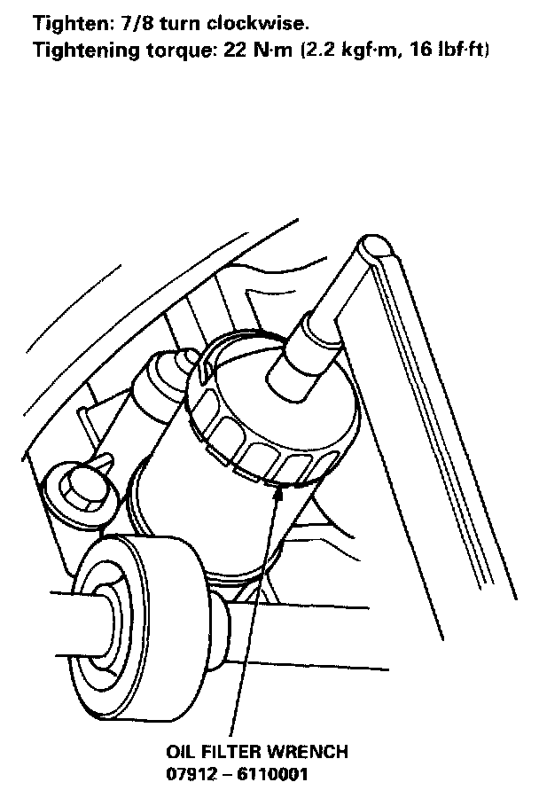 Tightening torque: 22 N.m (2.2 kgf.m, 16 lbf.ft)