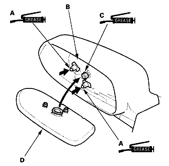 3. Apply multipurpose grease to the pivot (0 and joint pins.