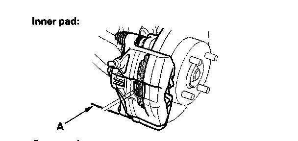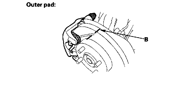 2. Check the thickness of the inner pad (A) and outer pad (B). Do not include the thickness of the backing plate.