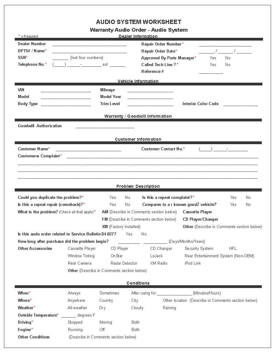 - Out-of-Warranty/New Replacement Audio System Component Repair Form