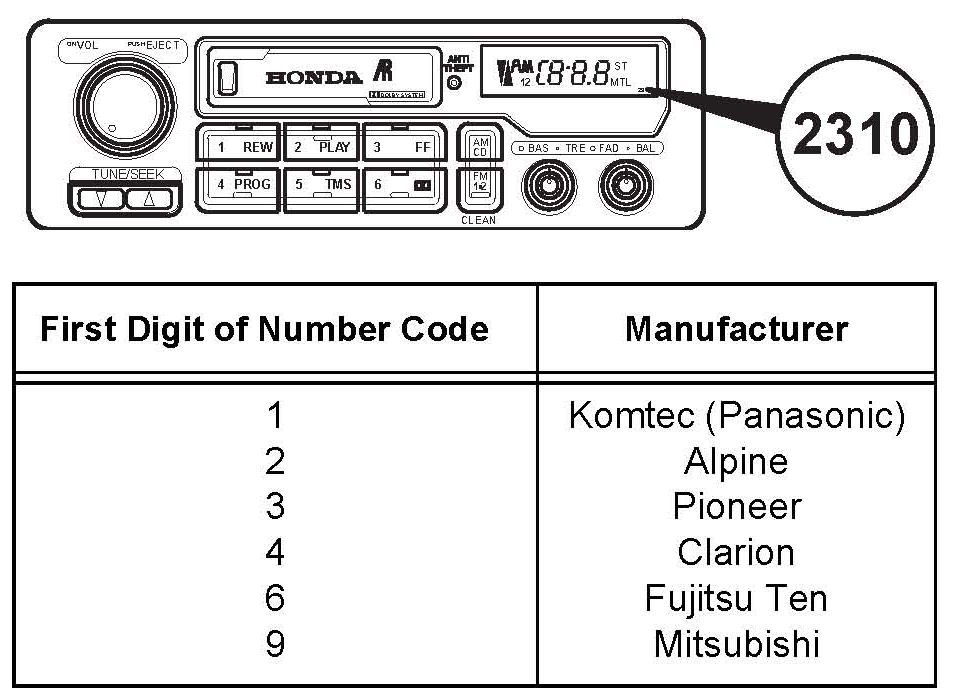 ^ If the unit has no number code on its face, check the label on the unit housing, and compare the first two or three letters of the radio reference number (or audio unit model number) to this list: