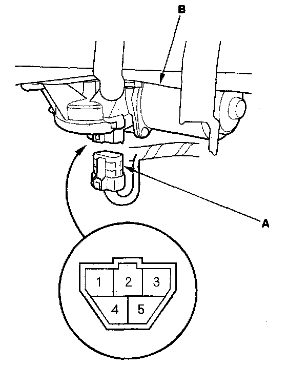 2. Disconnect the 5P connector (A) from the windshield wiper motor (B).