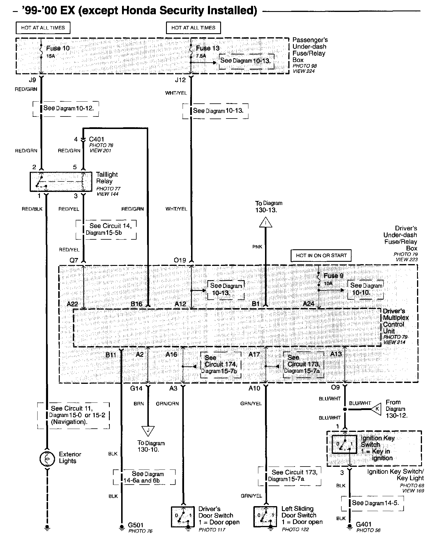 Diagram 130-12 (99-00 EX (Except Honda Security Installed):